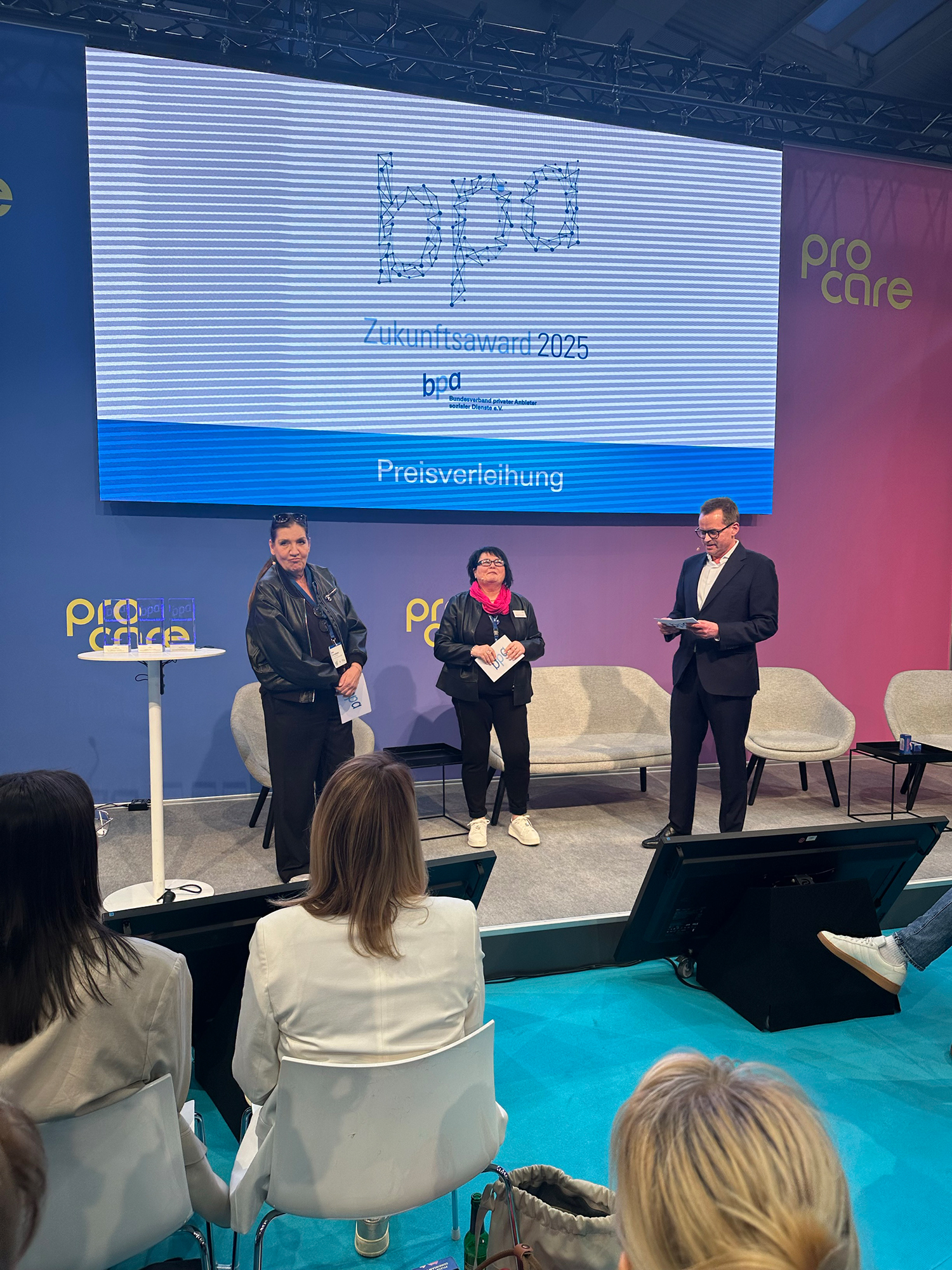 Neben spannenden Vorträgen zur aktuellen Lage in der Pflegebranche waren auch bekannte Gesichter wie 𝗗𝗿. 𝗘𝗰𝗸𝗮𝗿𝘁 𝘃𝗼𝗻 𝗛𝗶𝗿𝘀𝗰𝗵𝗵𝗮𝘂𝘀𝗲𝗻 und 𝗞𝗮𝘁𝘆 𝗞𝗮𝗿𝗿𝗲𝗻𝗯𝗮𝘂𝗲𝗿 vor Ort, die einen der vier Zukunfts-Awards verlieh.