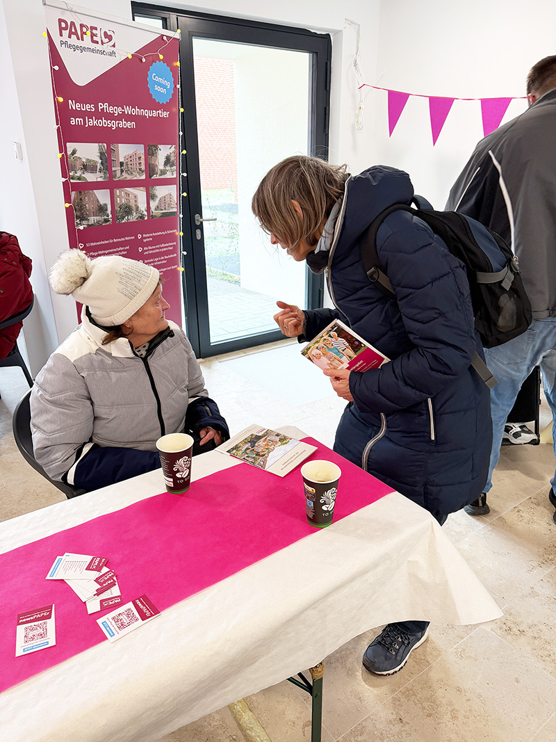 “Wir haben sehr viele schöne Gespräche geführt und deutlich gespürt, wie groß der Wunsch nach einem sicheren, selbstbestimmten Zuhause mit verlässlicher Unterstützung ist“, so die Geschäftsführung der PAPE Pflegegemeinschaft GmbH. Besonders das Zusammenspiel aus barrierefreiem Wohnen, optionalen Pflege- und Serviceleistungen sowie einem lebendigen Quartiersgedanken überzeugte die Besucherinnen und Besucher. Das Mehrgenerationsquartier steht für Gemeinschaft statt Isolation, für Transparenz statt Unsicherheit und für ein Zuhause, das sich den individuellen Lebenssituationen anpasst.