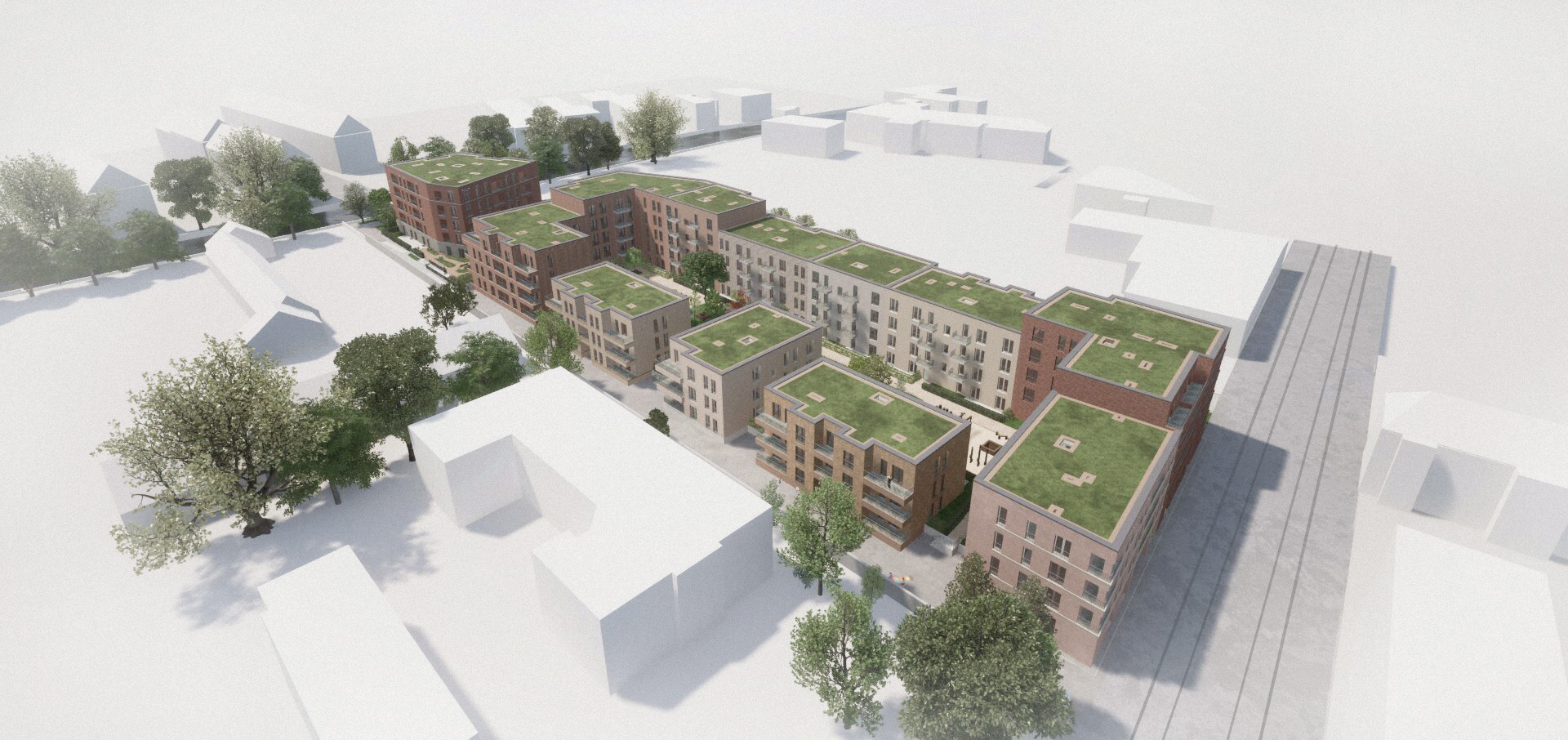 In der Bauhofstraße entsteht derzeit ein Gesamtkomplex mit 87 Wohnungen für Familien, Paare und Singles. Zudem realisiert die PAPE Pflegegemeinschaft GmbH 53 barrierefreie Wohnungen für betreutes Wohnen sowie spezialisierte Wohngemeinschaften für Senioren, unter anderem für Menschen mit Demenz.