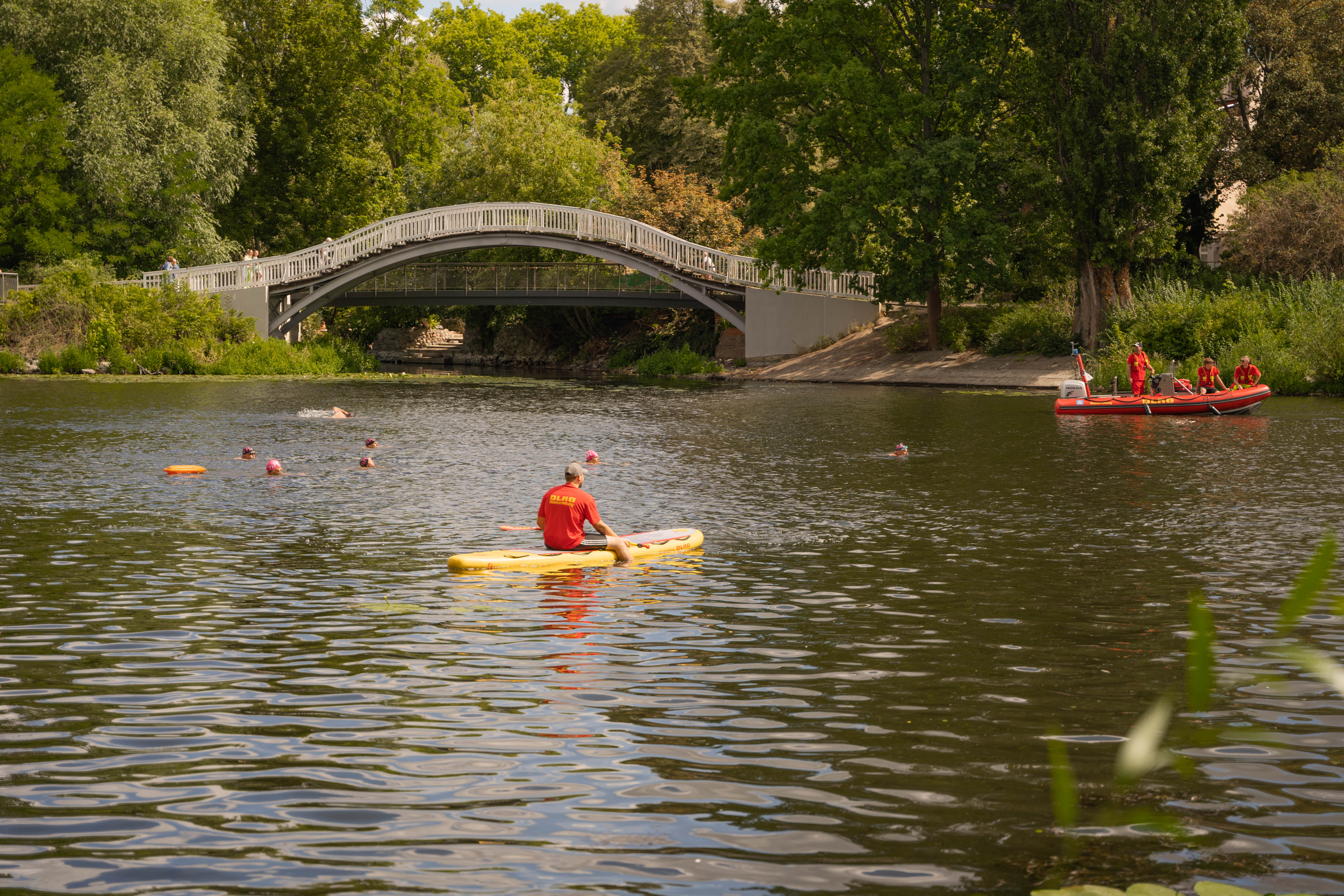Vergangenen Samstag am 06.08.2022 standen freiwillige SportlerInnen um 14:15 Uhr in ihren Startlöchern, um am 30. traditionellen Brandenburger Brückenschwimmen vom DLRG Brandenburg teilzunehmen. Das Ziel hierbei ist es, eine Strecke von 1000 Metern zwischen der Jahrtausendbrücke und der Luckenberger Brücke zu schwimmen. Wer dabei als erster zum Startpunkt zurückgekehrt ist, gewinnt.