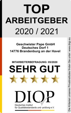 Vom DIQP (Deutsches Institut für Qualitätsstandards und -prüfung e.V) wurden wir als Top Arbeitgeber mit der Note “Sehr Gut” ausgezeichnet. Insgesamt haben wir bei der im Mai durchgeführten Mitarbeiterbefragung und bei der Erfassung der Arbeitgeberleistungen einen exzellenten Wert von 91% erreicht.