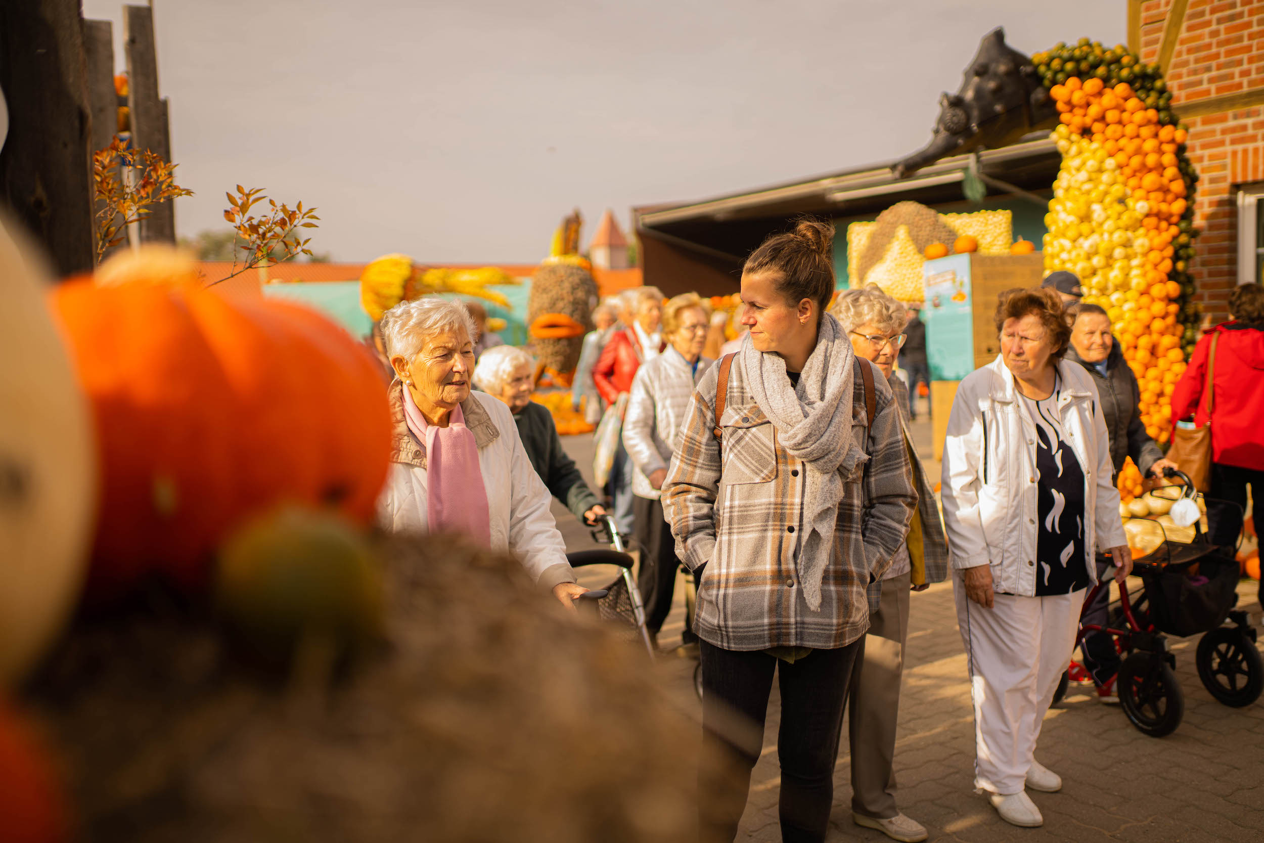 Mit unseren Gästen der Tagespflege besuchten wir kürzlich die beliebte Kürbisausstellung in Klaistow. Dort spazierten wir bei tollem Sonnenschein durch das orangene Herbstparadies und konnten gemeinsam diesen schönen Tag genießen. Neben der Siegerehrung zum größten und schwersten Kürbis gab es auch einige Skulpturen zu bestaunen, die aus Kürbissen entstanden sind.
